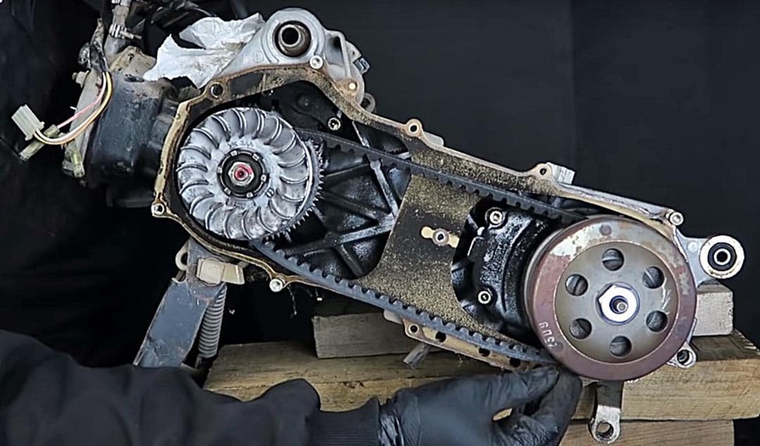 Este sistema de transmisión es apto para scooters urbanos y motos de baja potencia, ya que para modelos más potentes, haría falta una correa con más anchura y profundidad. Si la comparamos con la transmisión por cadena, la transmisión por correa requiere un nulo mantenimiento y dispone de un tiempo de vida útil más prolongado.