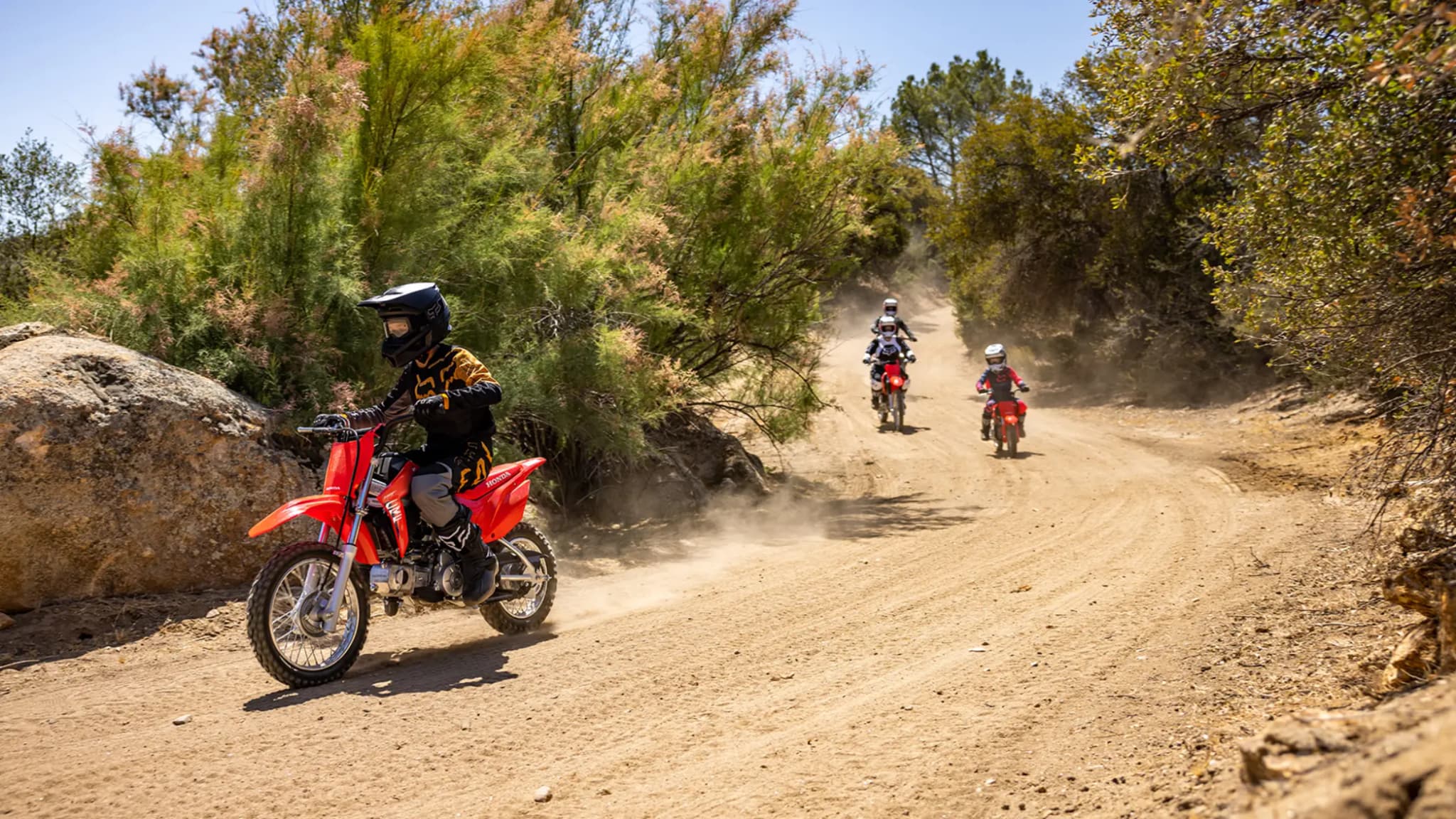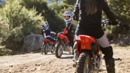 La carrocería inspirada en la CRF450R se combina con una altura de asiento baja de 657 mm, complementada con barras de motocross altas y anchas que cuentan con una almohadilla para el manillar y puños con diseño half-waffle, perfectos para manos pequeñas.